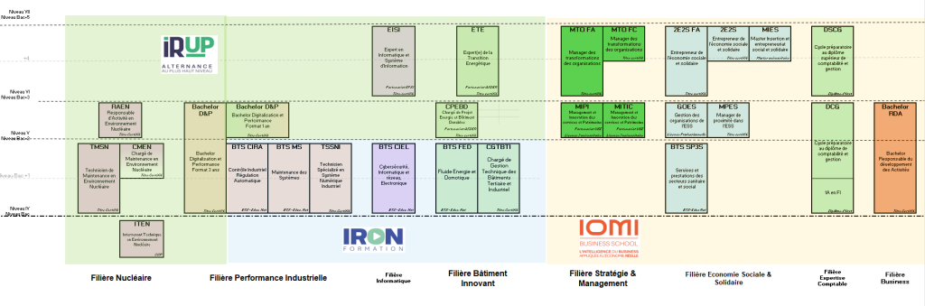 Le triptyque de nos marques écoles IRON IRUP IOMI donne accès à une offre de formation cohérente et progressive, du post-bac à Bac +5 avec des passerelles entre les univers :